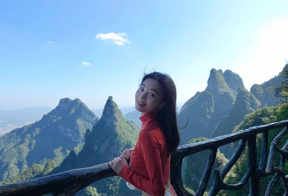張家界,是湖南一個著名的風景區,一座天然的森林公園。黃石寨、天子山、金鞭溪等勝境,是令游人心馳神往之地。在我們出發(fā)之初,心就早已高高飛揚,五個多小時的顛簸終于把我們載到了目的地,導游是一個年輕的女孩子,一見面就放開歌喉唱了首當地土家族的歌謠,歌聲婉轉動聽,一下子讓我們領略到了鄉村